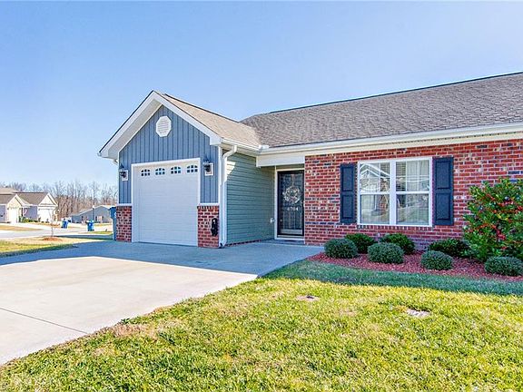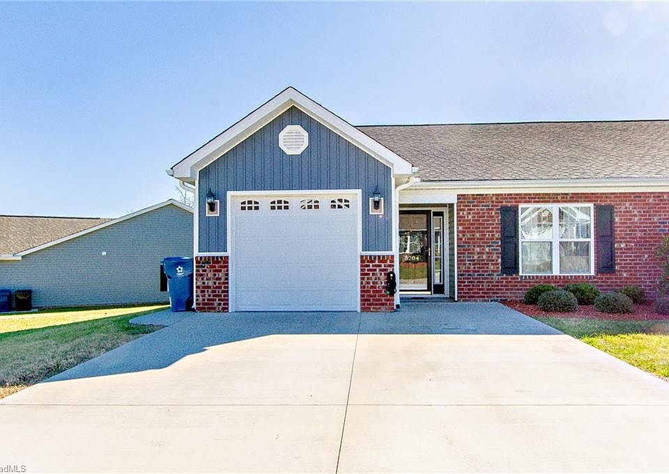 Luxurious townhome centrally located just minutes from anywhere in the Triad. 2 BRs, 2 baths, open floor plan features beautiful kitchen with granite counter tops, stainless appliances remain & custom cabinets. Hardwood floors, vaulted ceiling in living room, bathrooms have granite and master with double sinks. Single garage, covered front entrance, patio w/storage room located on the end. Security system and great view from the patio. Move in ready!