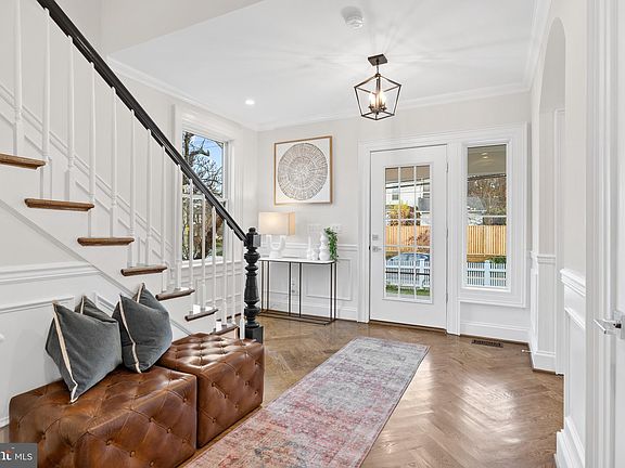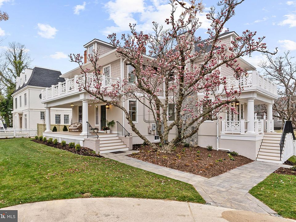 One of the few remaining original farmhouses in what became Chevy Chase, Maryland, this home has been stunningly reimagined by Studio 3877 and Christian Daw Design while proudly maintaining its period-appropriate charm. The five bedroom, four full and one-half bath home, is designed for active family living but will also impress your most discriminating guests. The exterior boasts two covered porches and two private balconies as well as a detached garage. Upon entry, the foyer welcomes you through a barrel ceiling hallway into a great room fit for entertaining. The kitchen is centered around a 14-foot island, serving as the central hub between the formal dining room and large living room, both of which are adorned with fireplaces. Rounding out the main level is a jewel box office with a fireplace, powder room, and pantry. The second floor hosts the primary suite, with large walk-in closets, an en-suite bath with wet room, and a private balcony. There is a secondary suite featuring an en-suite bath, walk-in closet, and private balcony. Two additional bedrooms with a shared bath and a laundry center complete the second level. The top level hosts the fifth bedroom and den that could also serve as a media room or second office. The basement level features a second den with a full bathroom that could be used as an in-law or au-pair suite. Additionally, there is a wet bar with a beverage center servicing both the media room in the basement and easily accessible to the main level. A secondary laundry room and storage finish the basement. A one year home maintenance agreement will be included with purchase.
