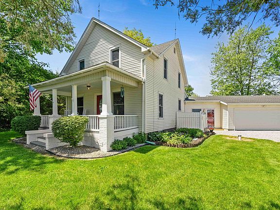 Nestled in the serene Jackson Township, perfectly situated between Auburn and Fort Wayne, this captivating 1918-built Americana gem offers a harmonious blend of historic charm and modern amenities. Located on a quiet, paved dead-end road with only local traffic, this property promises peaceful country living. 2 acres of beautifully landscaped grounds surrounded by mature apple, pear, maple, and pine trees, colorful gardens, and grapevines winding around a classic windmill. A deck and patio with a picturesque arbor create the perfect setting for outdoor relaxation and entertaining. Updates include new windows throughout, a kitchen and dining room remodel in 2011 includes gorgeous hardwood floors. In 2003 there was an addition of a laundry room, breezeway, and attached 2 ½ car heated garage. If the home doesn’t amaze you, the exterior amenities will! Centennial Barn: A stunning barn complete with two hay mounds, antique lightning rods, and weather vanes, exemplifying Americana style. Carriage House : A converted carriage house, now a cozy heated shed, offers versatile space for hobbies or storage. Potting Shed: Ideal for gardening enthusiasts. Well: An 85-foot-deep, 4-inch well ensures ample water supply. Electric and gas hook ups ran to where the pool once was. This property’s exceptional features, including its lush landscaping, original architectural details, and thoughtful modern updates, make it a true treasure. Whether you’re sipping coffee on the breezy front porch or strolling through the gardens, every moment feels like a step back into simpler, more beautiful times. Don’t miss the chance to own this slice of Americana paradise!