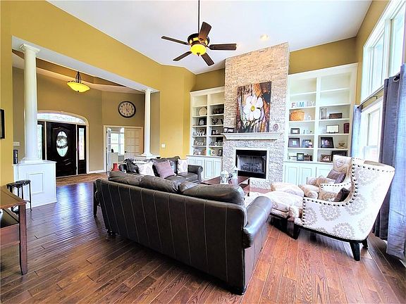 Magnificent in its scale and design, this 5BR 5BA luxury home was built for the ultimate lifestyle. Dramatic great room w/14' ceilings built for entertaining w/cozy gas-log fireplace and floor-ceiling blt-in bookshelves, columned formal dining room w/double tray ceiling, huge master suite w/his & her walk-in closets & sinks, soaking tub & sep shower, stunning kitchen w/custom cabinetry, granite counters, large center island and informal breakfast room, large bedrooms and DREAMY walk-out basement w/possible in-law quarters, office, 2nd kitchen w/bar, weight room, theater and rec rooms. Plus, multi-tier deck and patio with in-ground pool, 4-car garage and manicured 1.5 acre lot. Perfect!!