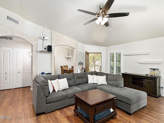 Excellent location next to community lake/park on a large corner lot. Single level with no steps, vaulted ceilings, wood and tile flooring. Split master floor plan with dual sink vanity - all bedrooms have walk in closets. 3rd bedroom opens to great room and would be perfect for an office. formal dining, kitchen has nook and granite counters. Plantation shutters throughout. Screened patio and private lot with pool. This is one of the lowest priced home in the 85215 zip code. Easy access to the 202 Loop, the 60, restaurants, schools, shopping, golf courses, and hiking. Less than 15 miles to Saguaro Lake and Usery Mountain State park. Seller is looking for a leaseback for up to 6 weeks.