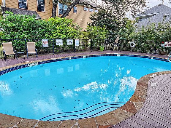 Fantastic free standing unit in Towne Court located in South Austin. Open floor plan with 3 bedrooms and laundry room up and main living areas down. Large master with balcony and with walk in closet. Great tree canopy surrounds master. Hardwood flooring/tile downstairs and carpet up. Stainless appliances and granite countertops. Quaint community pool and mature trees throughout. Easy access to Mopac, 290,360 and downtown but great location for local shopping and dining!