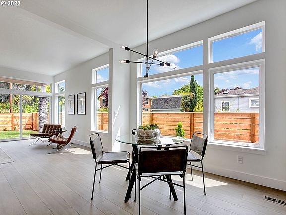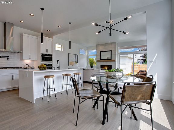 Stunning modern contemporary in hot Arbor Lodge neighborhood. Another quality Etruscan Custom Homes property. Over 2000 SF, 4 bed/3 full bath, SS apps, 8' island, quartz, built-in oven. Generous primary suite w/soak tub & free-standing shower, walk-in closet, high-end finishes, 10' ceilings on main, living room w/8' slider and gas firepl, luxury lam. flooring, covered deck, detached garage, sizable back yard. Peekaboo view of the west hills. Close to everything that makes North Portland great.