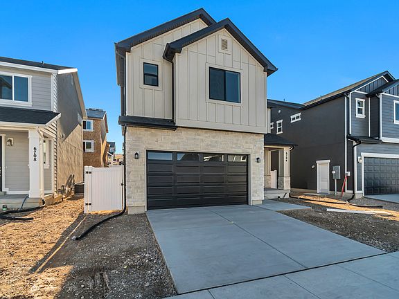 For Open Houses, please check in at 6882 S Holly Lake Drive, West Jordan, UT 84081! GAMBEL OAK Plan with popular Farmhouse Exterior Styling. You'll get some amazing included features for the price: Energy Star certified features, 2x6 exterior wall construction, Active Radon Mitigation system, a dual HVAC system to more efficiently heat and cool your home, substantially upgraded insulation in the attic and walls, dual glazed Low-E argon treated windows, and an Energy Recovery Ventilator to help with air circulation and overall temperature comfort. If you could design this home yourself, this would be it! You'll HAVE to check out the main shower! It's HUGE!!. Your new home will boast 9' ceilings on the main floor and the kitchen has upgraded cabinets and a waterfall edge on the quartz countertops on the kitchen island. The second floor has a spacious loft overlooking the entryway. As you enter the home, you are greeted with a soaring entryway that gives a and airy open feeling. Enjoy a spa experience in your primary bathroom with an extremely large walk in shower with beautifully upgraded tile. Vaulted ceilings in your primary bedroom will provide an elevated experience in your personal sanctuary. This home is even ready for your furry friend with a fully fenced yard! MOVE IN READY and available to show anytime through Aligned Showings. See agent for details about our current affiliated lender incentive; rates as low as 3.99%! Contact your sales pro for details or info on getting in touch with the builder's affiliated lender, CLM Mortgage to take advantage of this amazing deal.