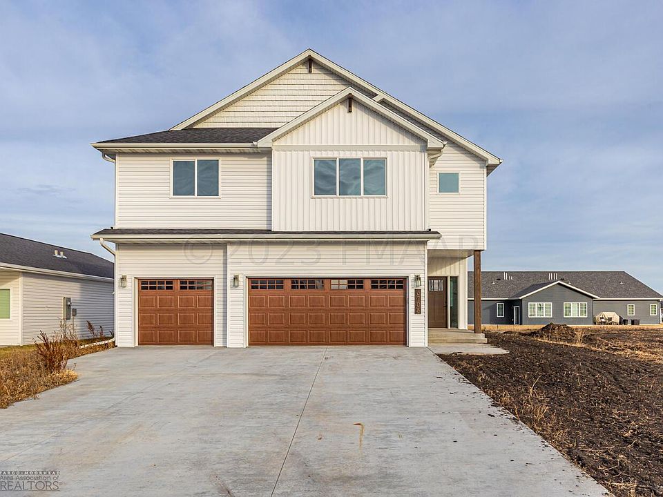 Welcome to this stunning 4 bed, 3 bath new construction home located in the desirable neighborhood of Horace, ND. This exquisite property is back on the market, offering you a second chance to make it yours. The previous buyers unfortunately couldn't sell their home, creating an incredible opportunity for you to seize. As you step inside, you'll immediately notice the attention to detail and the upgrades that set this home apart. The spacious open floor plan seamlessly connects the living, dining, and kitchen areas, creating a perfect space for entertaining family and friends. The large windows flood the rooms with natural light, enhancing the warm and inviting atmosphere. This home also boasts a three-stall garage, providing ample space for your vehicles, storage, or even a workshop.