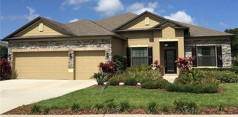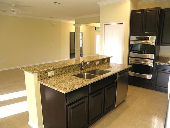 Available August 1st! This stunning, executive, 4 bedroom, 3 bathroom home was built in 2013, and was used as a model home by the builder until 2015. Not only does it have 4 full bedrooms, it also features an office with double french doors and high-quality laminate flooring. In addition, one of the garage stalls has been converted into an air conditioned, carpeted space with a spacious closet...this could be used as a second home office, den, or air-conditioned storage. No problem on parking- there is also a 2 car attached garage in addition to this space. The large master bedroom features double closets, one of which is a generous walk-in. In the master bath you will find double sinks as well as a garden tub which is separate from the shower stall. There are 3 additional guest bedrooms, one of which has an en-suite bathroom. The beautiful gourmet kitchen boasts stainless steel appliances, double ovens, a flat, glass-top stove, a pantry closet, a large breakfast bar, and granite counters which also match each of the bathrooms. There is an additional breakfast area and formal dining room which again features the laminate floors. The rest of the home is well appointed with 16" ceramic tile, plush carpet in the bedrooms, beautiful paint, accents, and window treatments. The huge covered, screened lanai overlooks the large fenced backyard, small creek, and pastures behind. Lawn care is included, and pets are welcome with an additional deposit and addendum.
