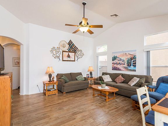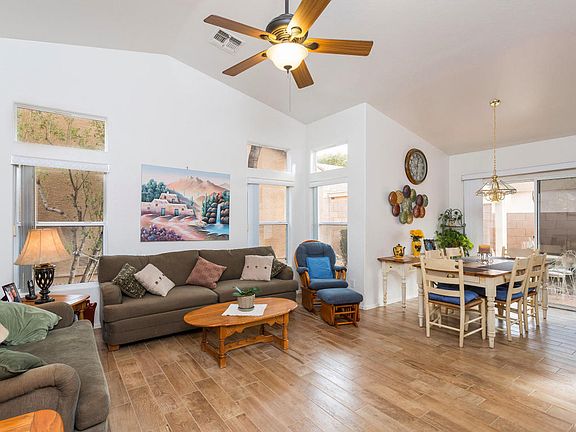 Don't miss out on this exceptional, well-located, single level home in the gated community of Mountain View in NE Mesa. This split floor plan offers 3 bed, 2 bath, great room, and 2 car garage and enjoys beautiful upgrades including: new ceramic plank tile in great room and walkways, tile in bathrooms, granite tiled kitchen counter tops, crushed granite sink, new faucets in the kitchen and bathrooms and more! The backyard offers an extended stone patio and fruit trees. Additionally,the 2 car garage includes an insulated garage door, swamp cooler and cabinets. Mountain View provides many amenities including a swimming pool with water feature, spa, playground, workout area, and banquet/meeting room. This home is immaculate!