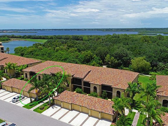 One or more photo(s) has been virtually staged. THIS BEAUTIFUL Condo is located upstairs ** Tons of upgrades and vaulted ceilings located within the gates of RIVERSTRAND ** TRANQUIL WOODED VIEWS can be enjoyed from your screened in lanai. Spacious 2 bedroom 2 bath and a den/office has a murphy bed that can be used as a third bedroom, with open floor plan and Granite in kitchen. Many upgrades throughout, crown molding, stainless appliances, tile on the diagonal, huge master bathroom, indoor laundry, 2 lanais! The Sliding glass doors with screened lanai have beautiful views located in the front and rear of this DOGWOOD MODEL. Coveted detached 1 CAR GARAGE **INCLUDES GOLF AND COUNTRY CLUB MEMBERSHIP Maintenance-Free living includes golf membership to 27-Hole Championship Golf Course designed by Arthur Hil Membership also includes Tuscan -Inspired 39,000 square foot clubhouse with 2 restaurants, 2 State of Art Fitness Centers, 2 Resort style pools, one with a Tiki Bar, 7 satellite pools and 8 Har-Tru lighted tennis courts. River Strand at Heritage Harbour offers Resort Style living with abundant amenities for everyone. Excellent Investment Opportunity - Golf/Country Club membership is transferrable to tenants. Gated Security manned 24 hours per day, 7 days per week. River Strand is a Pristine Riverfront community right off I-75 and conveniently located close to shopping, dining, University Town Center Mall and Sarasota. Located near the #1 beach in the Florida SIESTA KEY