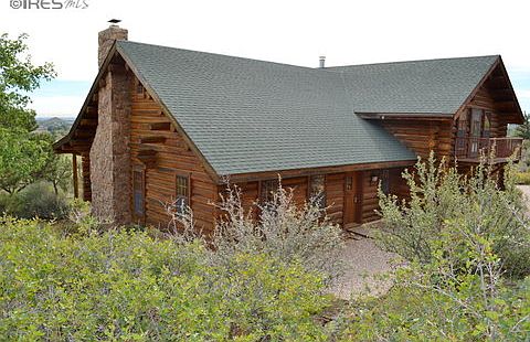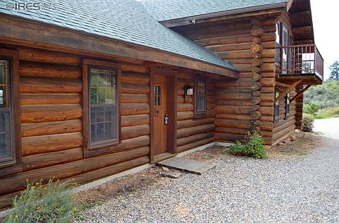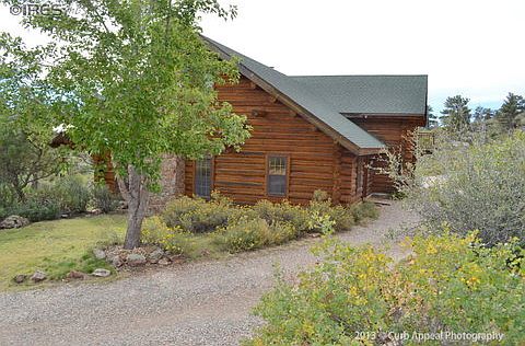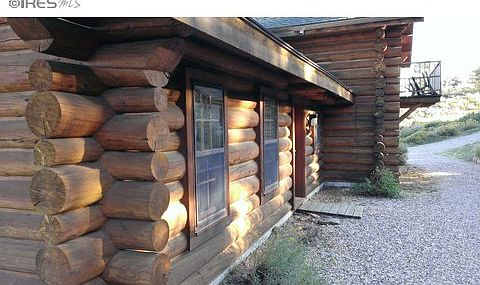 Gorgeous and authentic custom built log home nestled in ponderosa pines w/rock outcroppings. It sits high and dry with terrific panoramic city views, only 3 miles from Loveland city limits. It's on a private road that offers great seclusion, plus an additional 9 acres of perimeter riding trails with open space and ponds. Also a 31 x 23 log building/garage/loafing shed
