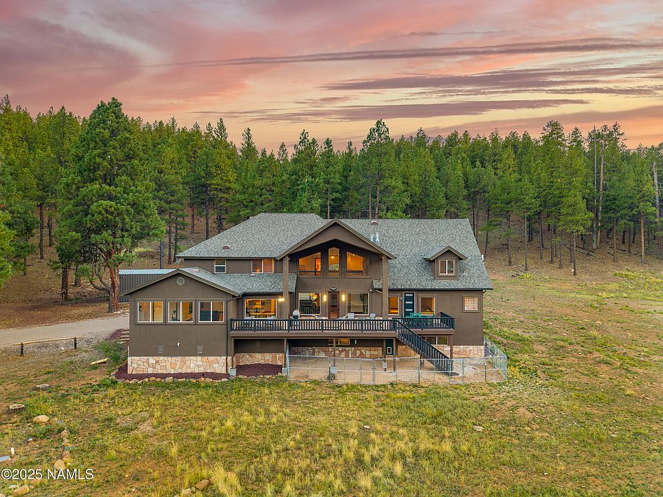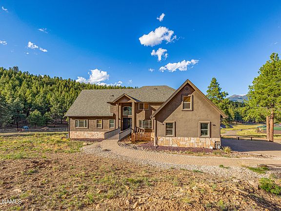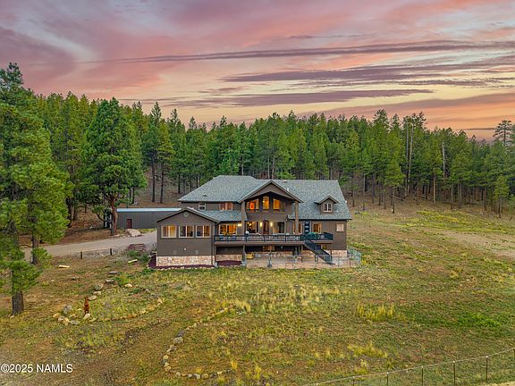 Experience Flagstaff living at its finest on this rare 8.97-acre estate backing the Coconino National Forest. This 5-bed, 5+ bath home captures breathtaking San Francisco Peaks views through expansive windows, with warm, refined interiors designed for both entertaining and everyday comfort. Step outside to endless possibilities - ride horses from your 2,400 SF barn, work or showcase in the 1,870 SF steel-framed shop, or explore trails for hiking, skiing, and ATVs directly from your backyard. Firewise improvements, a 7500-gallon app-monitored cistern, and abundant wildlife create a seamless blend of beauty and practicality. Offering end-of-the-road privacy yet just minutes to downtown, this is a once-in-a-lifetime legacy property.