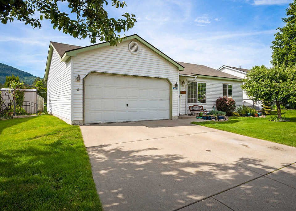 Sweet 2 bedroom home in Rathdrum's Deerfield neighborhood! Central A/C & heat for your comfort. Vaulted ceilings, wood-style laminate flooring for easy care. High-yielding apple tree welcomes you in the front yard. The private backyard oasis features a pergola & garden space, greenhouse & garden shed included! This unique property backs up to a large green space - no rear neighbors! New carpeting & pads in bedrooms, new energy-conserving blinds throughout with blackout blinds in the kitchen & bedroom. Reverse osmosis system included. Spacious laundry room with direct access to garage and kitchen for maximum convenience. Attached garage features a bonus office (removable if more garage space is needed). Natural gas is plumbed to the property if new owner wants to bring it to house.