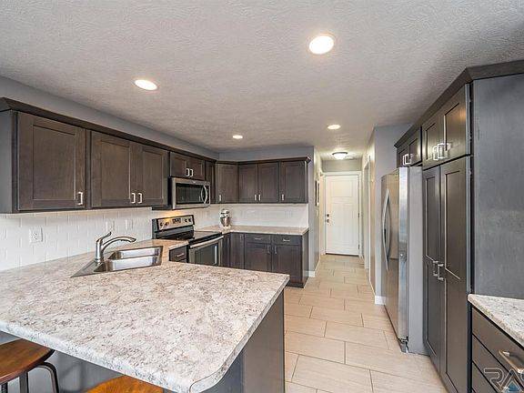 3 bedrooms on same level! You will love this modern twin home, with a master suite, fenced yard, and spacious kitchen! The main level is bright and open and features a spacious family room with large windows, and tons of natural light. The kitchen has lots of cabinet storage, a breakfast bar, stainless steel appliances, subway tile back-splash, and tiled floors. Just off of the kitchen is the dining area, that walks out to the patio, and privacy fenced yard with sprinkler system. Also on the main level is the laundry room, and ½ bath. The upper level features 3 bedrooms and 2 full baths, including the 14 x 13 master suite with full bath and walk-in closet. The other two bedrooms also feature walk-in closets for lots of storage space. This twin-home is super cute, and sits on a quiet cul-de-sac in SW Sioux Falls!