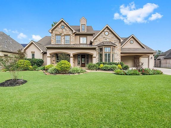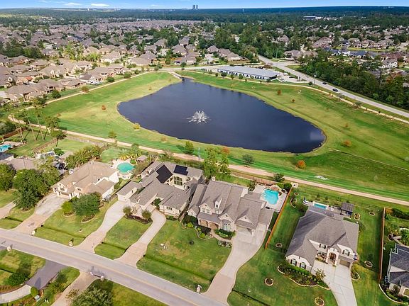 A must see breathtaking home with custom details in Augusta Pines on a stunning lot w/view of the pond. This home has been meticulously maintained and includes open concept family room with chef's kitchen, large island & bar, stainless steel appliances including double ovens. This home boasts 5 bedrooms, 5 ensuite baths + powder room. Two bedrooms are downstairs, including the spa-like owners' retreat featuring a massive walk in closet w/custom built ins! Guest suite down has large walk in closet, walk in shower, and doubles as pool bath w/ separate bath entry. Sweeping wood tread staircase leads you to a Game room, Media room and 3 additional large bedrooms all w/ensuite baths and large walk in closets. Huge covered balcony off game room over looks private heated pool and stunning view of the pond & fountain w/ additional covered backyard patio. Oversized 3 car garage. Minutes from The Woodlands & 99 w/endless dining, shopping, & two popular golf courses! Zoned to Klein ISD.