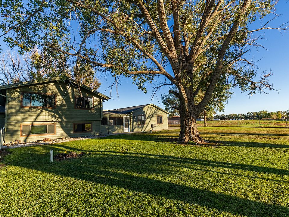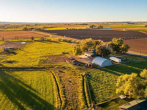 Experience the best of country living on 5.24 unrestricted acres with 5 shares of ditch rights. This private property is framed by mature trees and offers plenty of room for horses, livestock, or outdoor recreation. The well-kept 4 bedroom, 2 bath home features a welcoming stamped concrete entry sets the tone, while updates throughout make this home both comfortable and functional. Outbuildings include a spacious 40x40 Quonset shop, two loafing sheds, and even a basketball court, giving you endless options for storage, hobbies, or play. Fenced and cross-fenced, the property is ready for animals or simply enjoying the extra space. Don’t miss this opportunity to own a versatile property with water rights and incredible views! Info deemed reliable but not guaranteed. Buyer/buyer agent to verify.
