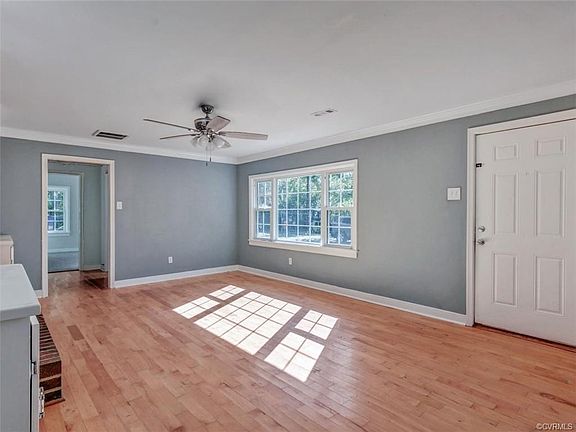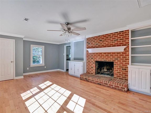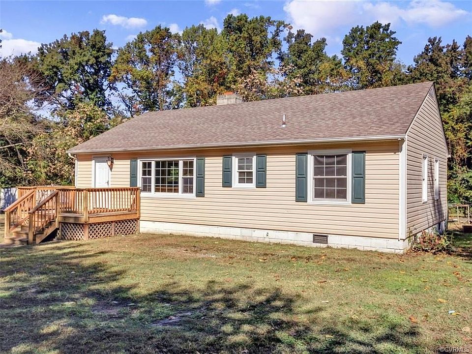 This 3 bedroom, 2 full bath ranch home has been completely renovated and is move-in ready on a large lot that may have development possibilities. The large eat-in kitchen has brand new counters, tile floor, ceiling fan, pendant light and pantry! All bedrooms have brand new carpet with hardwood floors underneath! Primary bedroom has ceiling fan, and the primary and secondary bedrooms have double exposur natural light! The hall bath with tub/shower combo has been updated with new vanity, framed mirror, red oak hardwood floor and toilet! Interior has been completely repainted! Living room has wood floors that have been recently refinished plus lovely built-in bookshelves on both sides of the stunning brick fireplace! Second full bath with shower is off the utility room/laundry room! Front porch has recently been rebuilt! Home is low maintenance with vinyl siding and replacement windows! Great storage with the pull-down attic, detached garage and detached shed! This fantastic opportunity to live in Chesterfield is close to Chippenham Parkway (State Highway 150) and Interstate 95!