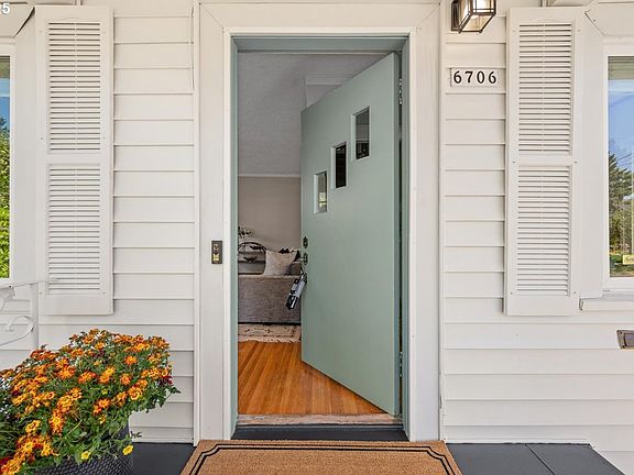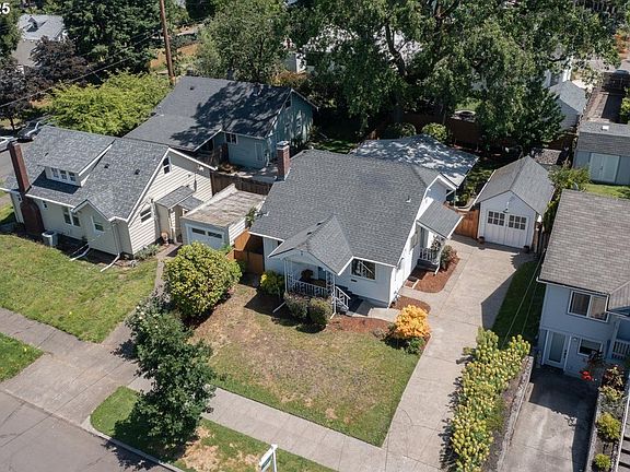 Simply perfect. Beautiful bungalow in an A+ location. Hardwood floors, cork floors, built-ins, fabulous fireplace. Spotless throughout. Fantastic floorplan and features - all on a picturesque Portland street. Huge backyard with covered patio and dappled sunlight under oak trees is ready for summer BBQ's. Cheerful kitchen, impressive remodeled bathroom, 3 bedrooms, and useable full basement. Easy distance to MAX, restaurants, coffee, shops, everything you love about close-in N PDX. Improvements to the home: Fresh exterior paint! All new HVAC; ducting, gas furnace, gas tankless water heater, A/C in 2022. Almost all new plumbing. Almost all new electrical. Chimney replaced from roof line up in 2023. M Leon inspected foundation; good condition, the minor recommended repairs were completed. Fully functioning wood burning fireplace last cleaned in 2023. Bathroom refresh in 2023; new tile, new cast iron tub, heated floors, high end fixtures, sound deadening insulation, high powered exhaust fan. New kitchen stove in 2024. Period sensitive light fixtures. Backyard irrigation. Oak/fir hardwood floors refinished in 2018. Oil tank decommissioned in 2014. Sewer line fully lined in 2014. 200 Amp panel installed in 2014. 90+ yr old oak trees in backyard, last pruned in 2023. Paved backyard entrance completed in 2021. Custom backyard gate milled from Oregon coast range cedar; gate posts are buried 6' deep and anchored in concrete. Reinforced, sistered joists garage loft make it great for storage. Fully fenced yard. Don't miss this one. [Home Energy Score = 4. HES Report at https://rpt.greenbuildingregistry.com/hes/OR10238366]
