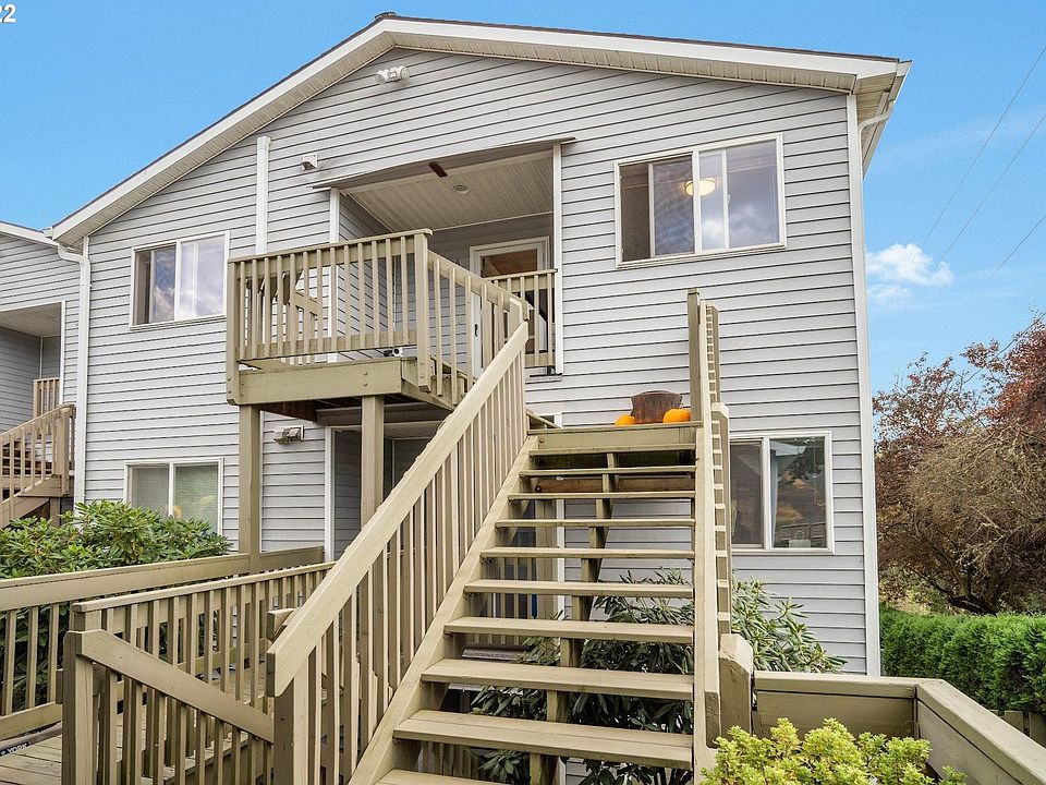 Some of the best views you'll find of the St Johns bridge can be found in the living room of this charming condo or relaxing on the private oversized back deck. This upper level, corner unit has two bedrooms & two full baths, an oversized open concept living / dining room, endless of storage, and a new efficient heat pump system that will keep you cool or warm, your preference! Blocks to downtown St Johns, Cathedral Park, Cathedral Coffee and so much more. It doesn't get much sweeter for $335k!