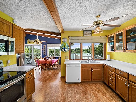 This West side waterfront charming bungalow has amazing lake views and oh so much potential! Located on Lake Panorama’s main channel, approx. half way up the lake, this 3+ bedroom, 3 bath walk-out ranch style home has had most of the big projects completed! Don't miss this chance to live waterfront. All new: Owens Corning shingles, tons of landscaping, retaining walls (by Wood Duck Tree Farms), covered upper deck, lower level screened-in porch, sidewalk to the lake and so much more. The open concept kitchen/dining/living features vaulted beamed ceilings providing a spacious feeling and there is even a new sleek electric fireplace. The master suite, second bedroom & hall bath are also on the main level. Downstairs you will find the family room, third bedroom & bath, laundry room and non-conforming bedroom. The two-car detached garage has a lower-level area with great storage. Whether you are relaxing on the screened-in porch or watching the boats go by on the upper covered deck, the views are stunning from every angle. Ready for your personal touches, this well laid out home could be your perfect lake retreat. The lake is calling! Call today for a private tour!