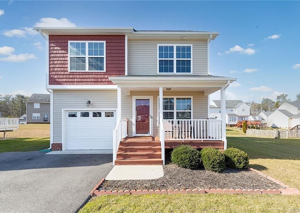 Gorgeous 3 bedroom 2 1/2 bath home sitting on a cul de sac lot. This home is only 5 years young and has been meticulously maintained by the original owner. You'll love the look of this home that features upgraded siding, paved driveway with plenty of parking, attached garage, and covered front porch. Step inside to find brand new flooring throughout the entire main level! The large living room welcomes you in and is open to the kitchen featuring tons of cabinet space and a huge eat-in area. Directly off of the kitchen you'll find the rear deck with a brand new pergola that's the perfect place for entertaining. Upstairs you're greeted by the nicely sized loft area that's perfect for a home office or school room. The Primary suite is generously sized and features a walk-in closet with brand new custom built closet organizers. The en-suite bath has dual sinks, tub, and stand up shower. Two additional bedrooms featuring a 2nd custom built closet system and another full bathroom round out the 2nd floor. Move-in ready, under 250k with convenient access to 288 & Chippenham Pkwy! Don't miss this amazing opportunity.
