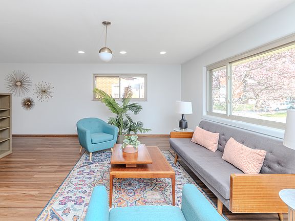 This chic mid-century ranch home is an escape from the mundane, a sanctuary of style and comfort waiting for you to move in. With a new roof, new flooring, water heater, and electric, you can say 'byeeee!' to home improvement headaches and focus on what really matters: living your best life. And you HAVE to see the kitchen, a culinary masterpiece straight out of the atomic '50s, complete with original St. Charles cabinets featuring built-in goodies like a cutting board, bread box, and slick slide-outs for all your pots and pans. When the sun's shining, those big sky windows turn your living space into a paradise of sunshine and good vibes. The trees surrounding the house also create stunning views as they change colors from Spring through Autumn. And when the chilly nights roll in, you can snuggle up by the fireplace in the living room and roast some marshmallows. But on the warm, sunny days, kick back in the massive 2-car garage with its very own covered patio-perfect for sippin' on lemonade or watching the clouds roll by. Don't forget to dive into the depths of the finished basement, where endless possibilities await. Game room? Home theater? The choice is yours! And let's talk location, baby! Nestled close to Irvington proper, you'll have all the hip shops, trendy eateries, and vibrant culture right at your fingertips. Seize the moment and make this light and bright mid-century marvel yours!