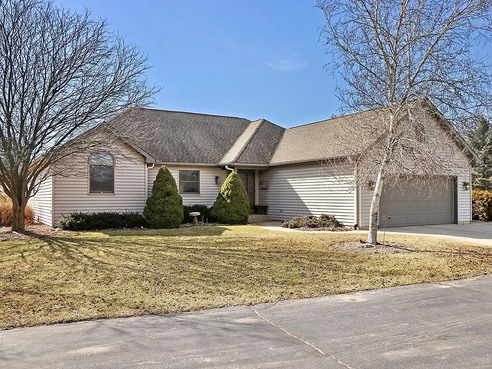 Experience the charm of countryside living in this welcoming ranch nestled on 1.5 acres! Step inside to discover hardwood floors, a captivating stone gas fireplace, and soaring vaulted ceiling creating a cozy atmosphere. Updates adorn the kitchen, main bath, and master bath, enhancing the home's allure. Entertain effortlessly in the open-concept living, dining, and kitchen areas. Venture downstairs to find a versatile layout featuring a generous rec room, flex room, bedroom, full bath, and ample storage. Outside, relax on the deck beneath the pavilion while your furry friends roam the fenced yard. The expansive 36x54x12 insulated shop offers a haven for hobbies, complete with water, electricity, and abundant space for all your gear. Welcome Home!