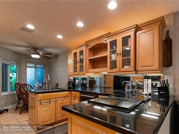Central Boca fully updated townhome.Granite countertops and mirrored backsplash. Huge undermount sink with pull down faucet. Jenn air range with outside downdraft. New dishwasher. Maple cabinets with glass doors and custom slide track s. Custom lighting above cabinets and under. A/C 2yrs, Water Heater 3 mths, Impact windows and doors, and new Electric Panel. Tile throughout downstairs and patio. Separate formal dining area and casual kitchen dining. 2nd floor boast a large master suite, with an additional family room/den, which could easily be converted to 4th bedroom. Low HOA maintenance includes insurance, exterior building maintenance and common areas.