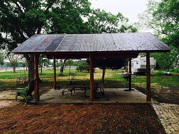 40x80 cedar siding workshop on property.11 acres Has air, heating, kitchen, bathroom. 12x12 roll up shop door. Recent septic system and well pump/ Foam insulation. Lots of trees; 30 pecan, 3 live oaks, orange, tangerine and fruit trees. Out door covered patio area w/covered kitchen and picnic area. No restrictions. Muti-use. Could be used for any type of business; restaurant, residential, RV & Mobile park, storage building, event venue, company picnics, etc.
