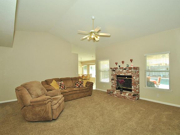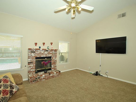 Just bring the bags!!! Move-in ready exquisite 3/2 Princeton Model, Cambridge Home with vaulted ceiling in the Living and Master bedrooms. Living room has a Brick Fireplace newly installed carpet, and ceiling fan/light fixture. A new buyer can look forward to enjoying new Kitchen appliances, breakfast bar and an amazing view of the gorgeous outdoor pool and deck area through the Bay window, and two french doors that converge in the back patio. In the fresno summer, the Pool/deck area avails the serenity or entertaining that defines family and personal times enjoying your home. Both bathrooms in this home have been completely remodelled and now boast of walk-in shower areas with custom seat design and all new flooring and fixtures.