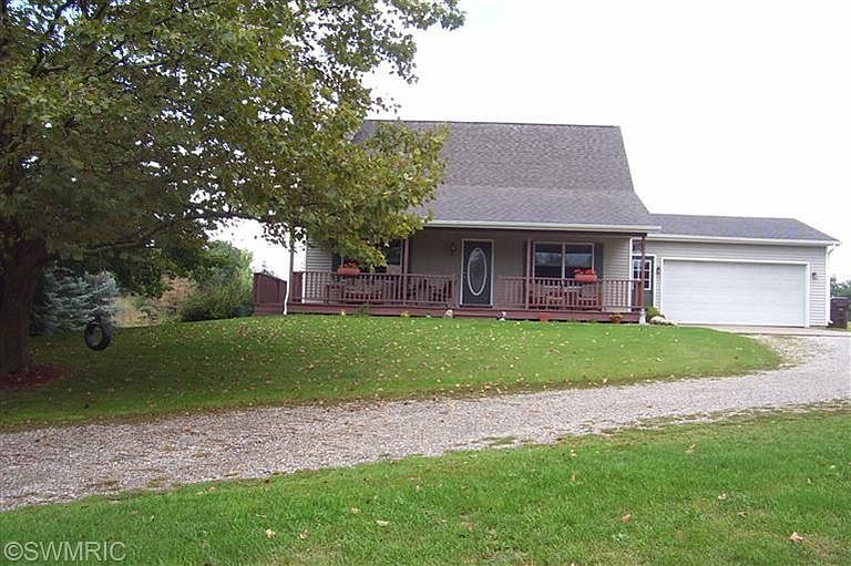 Comfortable home with the right setting. Enjoy the wildlife from your covered front porch or the sunset from your covered deck. Wrap around walkway from deck to front porch. 30x40 outbuilding with storage loft. Enjoy this 4 bedroom 2 bath home in Zeeland Schools on over 5 acres.