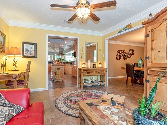 Nestled on a quiet cul-de-sac and backing up to a greenbelt, this fully remodeled, open floorplan home features custom finishing touches throughout. Colorful mature landscaping, stained/stamped concrete walkways and drive. Commercial grade kitchen w/granite counters, walk-in pantry and butcher block prep area. Island cooking zone w/hibachi griddle, gas burners and hi-grade exhaust system, a chef's dream come true! Huge primary br w/wood tile floors and ledger stone accent wall, ensuite bath behind custom barn door, w/free standing oversized tub, ledgerstone wall, separate custom shower, chiseled edge granite, upgraded fixtures. Oversized laundry with unique flooring, s/s sink. 20x24 game room with full bath, high ceilings + craft room. Huge backyard features flagstone walks, patio, waterpark style pool with slide, grotto and waterfall; separate play area, bike barn, fire pit and gazebo. Energy efficient windows, all baths remodeled with tile, tubs, granite and more.