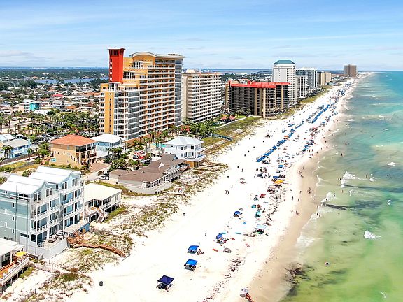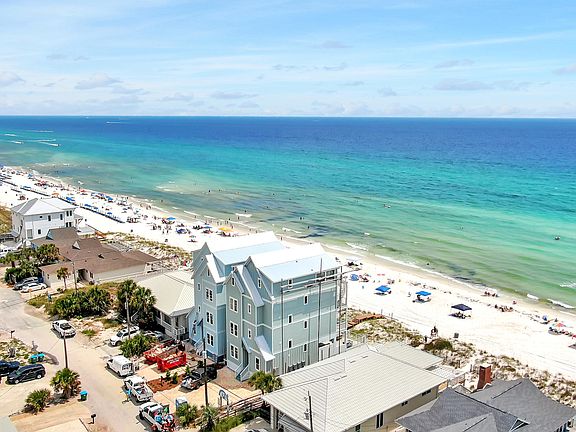 ''Beach Happy'' is an exquisitely constructed 4-level beachfront home. This unique dream home features 8-bedrooms, 9-bathrooms, a private pool, recreational room, and open-concept kitchen/living/ dining all on the 4th floor with walkout balcony.As you first walk through your front door you will come upon the first two bedrooms, to your left is a king master suite with connected single vanity/shower bathroom and to your right is a double twin room featuring two twin over twin bunks which sleep up to 4 people; also with a connected single vanity/shower bathroom. As you keep the tour moving towards the beachside of the home you will find the quaint recreational room leading out to the private outdoor pool/spa with amazing beachfront views.