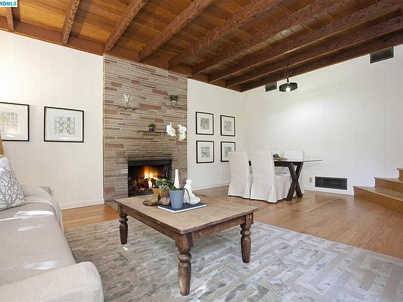 Serene and surrounded by nature, this classic 1951 mid-century will become your Montclair retreat. A stately Grand Oak graces the front of the property and welcomes you home. The gorgeous sunken living room - with original 50s stone fireplace, built-in planter and hand-hewn beam ceilings - is perfect for entertaining. You'll enjoy the cheerful eat-in kitchen, with its user-friendly cooking set-up, butcher-block island and ample storage space. This home has a convenient floorplan: 3 bedrooms, 2 bathrooms, kitchen and living/dining rooms on the main floor, and a large apartment-like finished basement with kitchenette and bathroom. There is even a bonus room off the garage that could work well as a media, exercise or rumpus room. The hardwood floors have been refinished, and the house has been freshly painted inside and out. The sunny patio and terraced back yard are great for al fresco dining, gardening and play. 6708 Aitken Drive is ready for you. FEATURES INCLUDE -Easy living floor plan -3 bedrooms, 2 bathrooms on the main level -Huge lower level finished basement with kitchenette area, bathroom and separate entrance -Master bedroom has en-suite bathroom -Bright eat-in kitchen with butcher-block island -Large sunken living room with fireplace and hand-hewn beam ceiling -Refinished hardwood floors -Additional bonus space - Media room? Exercise room? -Sunny back yard, side patio, a storage shed and space to garden -Attached garage -Freshly painted inside and out -Sewer lateral certificate of compliance -Close to Regional Parks for great hiking trails, picnic areas and more -Minutes to Montclair Village