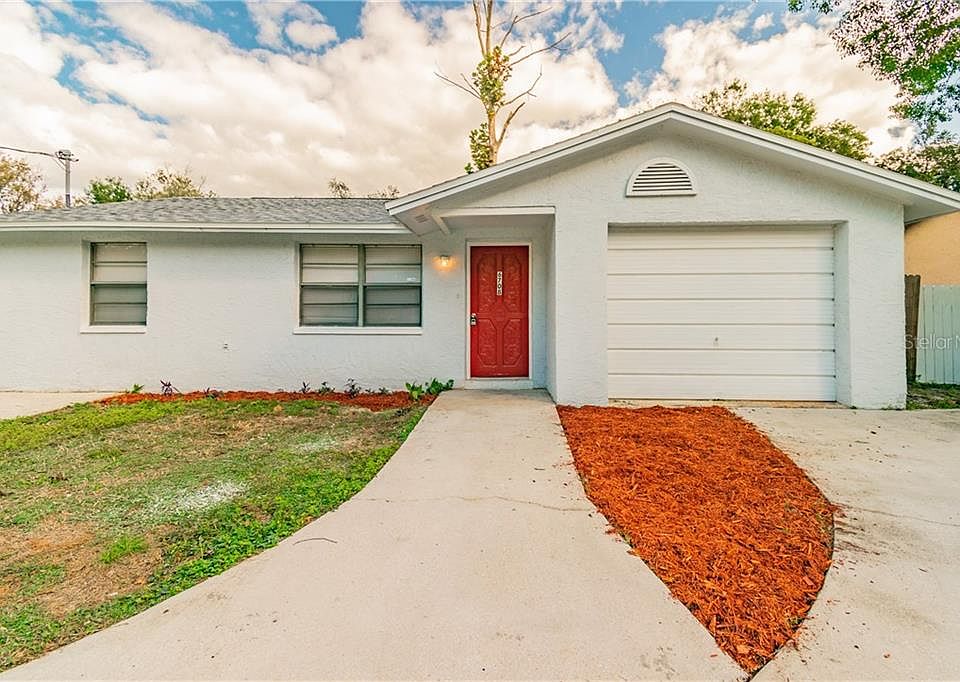 Nicely remodeled 3 bedroom, 2 bathroom home with spacious yard in great New Port Richey neighborhood. The remodeled kitchen features beautiful wood cabinets, LED lighting and granite countertops. Additional features include tile floor throughout, updated bathrooms, and oversized circular driveway. The Master suite in the refinished garage includes a large walk-in closet and en-suite bath with tub. Roof and HVAC were replaced in June 2016. Come see this beautiful move-in ready home!