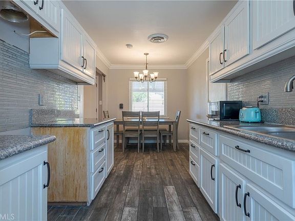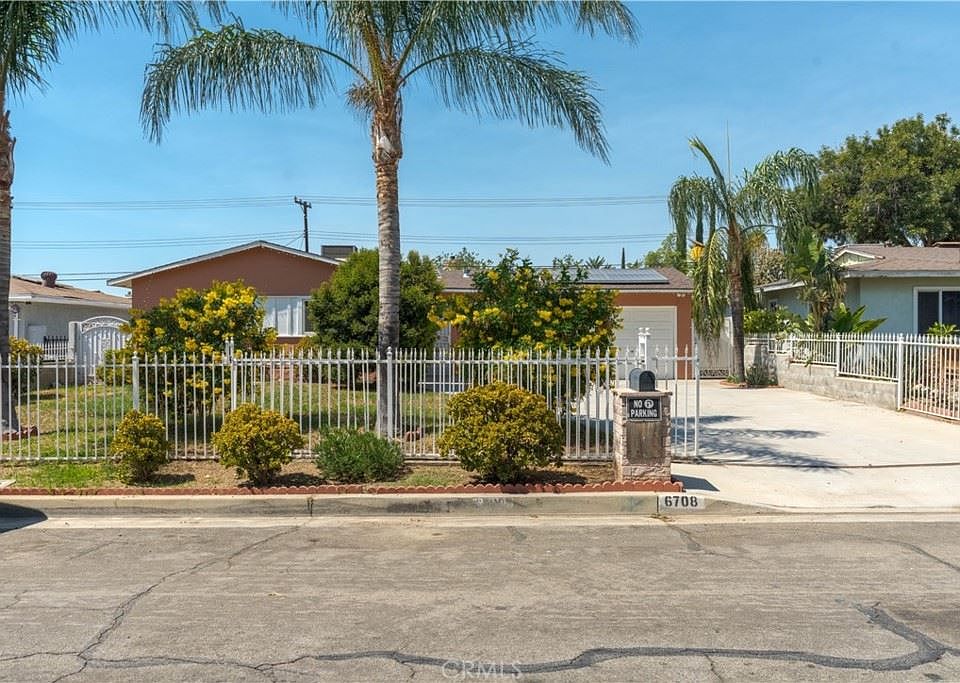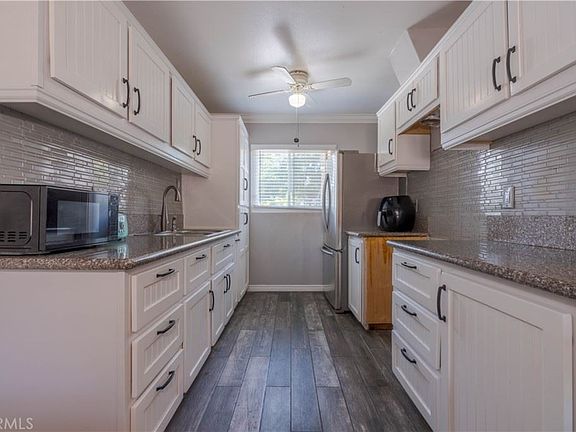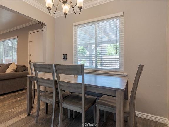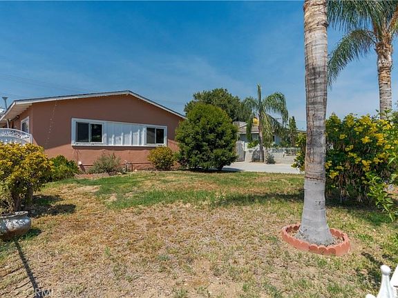Beautifully updated 3 bedroom, 2 bath, 1046 sq ft Rialto home. Nestled in a community between newer built homes and just a few minutes away from the Renaissance Marketplace shopping center. ~ Double pane windows throughout. ~ Spacious floor plan. ~ Recessed lighting. ~ Crown molding. ~ Updated kitchen and bathrooms. The hallway bathroom has shower/tub combo and the master suite has a step in shower. ~ Good size hallway storage closet. ~ Updated lighting fixtures. ~ Save $$$ with the PAID OFF solar panels!! ~ New wood look ceramic tile throughout most of the home. ~ The attached garage has a wall A/C and an exit door to the backyard. ~ Pool size backyard has several fruit trees and provides plenty of space to create your backyard paradise. Towards the back of the property, there is a shed that has been converted into a room...... Complete with wood look ceramic tile, a ceiling fan, and a wall A/C! This can possibly be updated to an ADU. Water source close by. ~ Plenty of space under the covered patio for an outdoor social area. ~ Once fall arrives, open the beautiful beveled glass front door and let the fresh breeze into the home through the privacy door gate ~ Lush landscape in the front fully gated yard.
