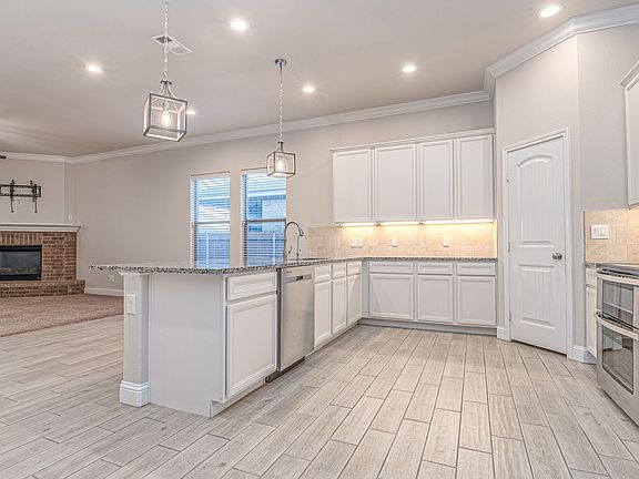 Welcome to 6708 Brand LN, a stunning 3-bedroom, 2-bathroom home located in the heart of Lone Star Trails! This home boasts high ceilings and an open floor plan, creating a spacious and inviting atmosphere. The kitchen is a chef's dream with double ovens, upgraded white cabinets, under-cabinet lighting, and a spacious corner pantry, as well as stainless appliances and a new refrigerator with ice and water and RO Unit, for good tasting water. Water softener too! The sequestered master suite is a private retreat, featuring a roomy glass shower, a luxurious 70" soaking tub, and an amazing walk-through closet. The home is adorned with wood-look ceramic tile in the living areas, and it's crowned with molding throughout. The property is nestled in a secluded cul-de-sac, with easy access to Loop 250 North and just minutes from the new Lone Star Trails Elementary. The low maintenance xeriscaped front yard is complemented by a green grass backyard with an automatic irrigation system. The extended back porch, adorned with pretty lights, and the covered front porch are perfect for outdoor relaxation and entertainment flow. The home also features glass storm doors, front and back, a gas-jet fireplace with a raised hearth, ceiling fans in every room, and a huge laundry room with hanging and storage space. The property also includes a 12x12 lockable storage building and an extra-wide driveway. Enjoy the nearby playgrounds and walking trails for outdoor activities. This home is a perfect blend of comfort and convenience. All McCourt Property Management LLC residents are enrolled in the Resident Benefits Package (RBP) for $45.95/month, which includes renters insurance, HVAC air filter delivery, credit building to help boost your credit score with timely rent payments, $1M Identity Protection, move-in concierge service making utility connection and home service setup a breeze during your move-in, our best-in-class resident rewards program, and much more! More details upon application. All residents aged 18 and over must have a credit score of 650 or greater. Background check will be performed. Pet friendly with accepted pet application, deposit and fee. We can't wait to show it to you!
