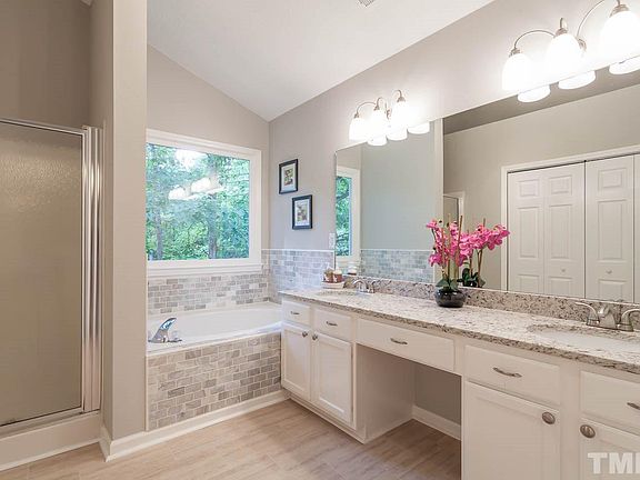 GORGEOUS Cul-de-sac home with bright open floor plan and upgrades galore! Custom designer kitchen that features island, granite, glass tile back splash and stainless steel appliances. EXOTIC 5 inch Bamboo hand scraped flooring throughout; NEW Roof, plush carpet & designer paint. AWESOME master suite with separate garden tub and shower, double vanity and HUGE Walk in Closet. Large deck overlooking a wooded private yard. Convenient to 440 and 540 . Move in and enjoy!
