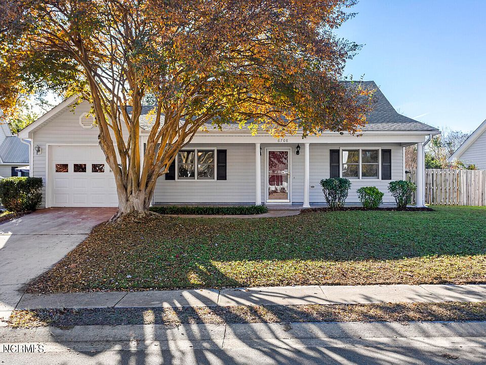 Come see this perfect investment property or first time home owner opportunity. Located in a cul-de-sac in the Weatherwood neighborhood, this 2 bed and 2 bath home has a front and back porch with a fenced in back yard. The home comes with a 2-10 home warranty for extra piece of mind. This home is located ~15 min drive from Wrightsville Beach, ~10 min drive from Mayfair shopping center and UNCW. New garage door in November 2022. Roof inspected in early December 2022, see documents.