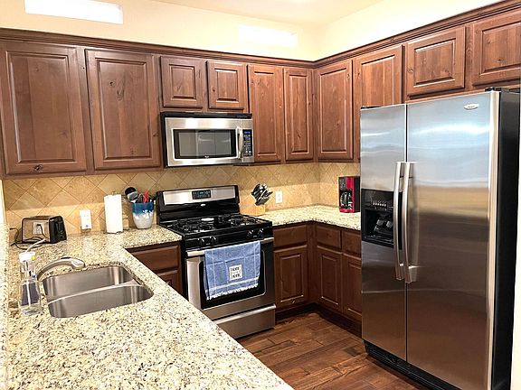 Beautiful 2 bed/2 bath (plus office!) condominium that lives like a single family residence with a private, fenced backyard*Offered furnished or unfurnished*Gourmet kitchen with granite counters and stainless appliances, including a refrigerator*Sizable primary bedroom with ensuite bath featuring a walk-in closet, double vanity, garden tub and separate shower*Open concept floor plan is perfect for entertaining*Beautiful hardwood floors and recessed lighting*Utility room with full size washer & dryer as well as a two car garage*Serene gated community just North of William Cannon*Welcome Home!