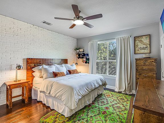 So many special features about this lovely, spacious home. Light, bright and freshly painted with warm, beautiful colors that compliment the wonderful feature walls of wood and brick. (Must see) Multiple tiny wall windows to invite the sky into the rooms, but allow you to keep the privacy you desire. Backyard features a great deck, covered patio with ceiling fan and tv mount installed ready and waiting for yours. Enjoy the evenings and games while you barbeque and soak in your own little piece of Austin. No disappointments here!