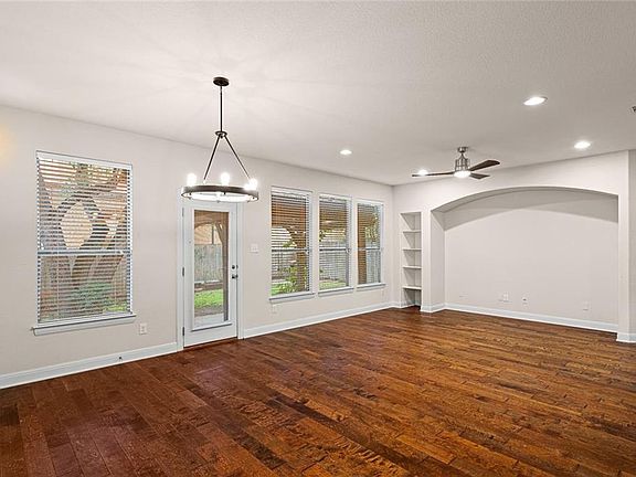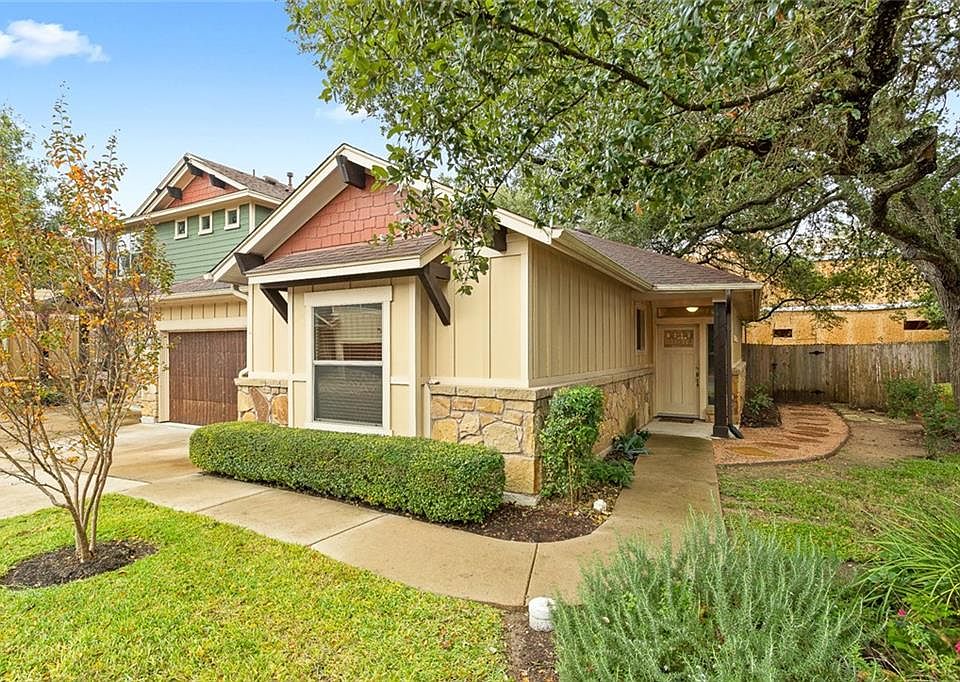 One story condo in wonderful South Austin gated community! Wood floors & high ceilings throughout. Kitchen features granite counters, lots of counter space, breakfast bar & opens to family room. Spacious living area w/ built-ins + office/study. Master suite includes large walk-in closet, double vanity, garden tub & separate shower. Backyard has gorgeous shade tree and patio with covered pergola. Great location near shopping, schools and parks. Easy access to Ben White, Mopac and 35-very lightly lived-in!