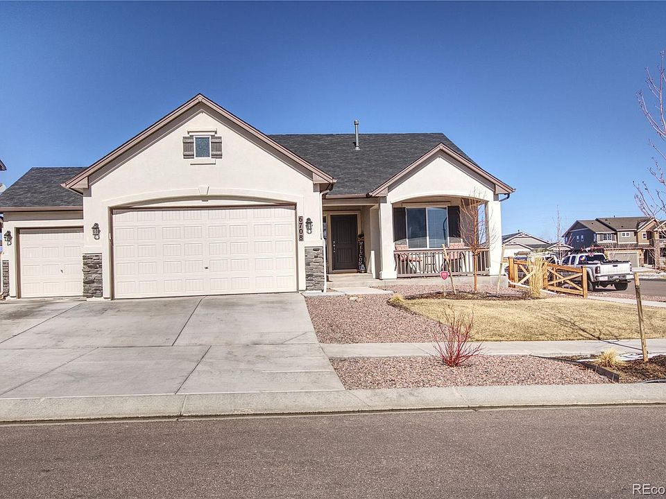Don't miss this newer, 2017 Banning Lewis Ranch Home! Ranch-style home located next to a neighborhood park, easy access to schools, shopping, major transportation routes and all the unique amenities of Banning Lewis Ranch. An open and efficient floor plan with a GREAT ROOM with lots of natural light, a fireplace, surround sound pre-wire, dining room, granite countertops, stainless steel appliances. The main-floor master suite includes an 5 piece bathroom and a spacious walk-in closet. Main level laundry provides complete one level living. The 3 car garage offers the storage necessary for an active Colorado Lifestyle. The huge unfinished basement allows for customization to your future needs. Outside, you'll find a fenced, professionally landscaped low-maintenance yard. A rare combination of Location and Features.