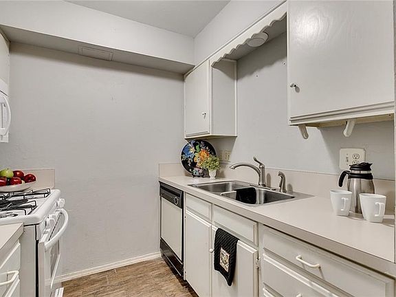 OPEN HOUSE Sunday 06.03.18 2-4PM. Don't miss this one! Enter Condo through gated private Open Patio area facing GREENBELT with view of mature trees and creek. 16x14 Living Area features wood look ceramic tile & view of greenbelt. Dining Area 10x9, is open to Living area. Kitchen is 7x6 with freestanding Range/Microwave & Dishwasher. Bedroom is 14x11 with large closet 11x2. 5x8 bath has tub & shower, and a great supply of HOT WATER!. Stackable washer & dryer included. One Reserved parking space next to Condo, guest parking to the west of building. UPDATES 2014 Wood look Ceramic Tile throughout, Carpet only in Bedroom, Living room Down Lights, Bathroom Tub, Toilet, Lighting, Vanity, Sink & Faucets. 2018: NEW GAS RANGE/MICROWAVE, PAINT IN LIVING , DINING & BEDROOM; KITCHEN LIGHT. HOA $123.75monthly covers Reserved Parking Space, Exterior insurance, Exterior maintenance, Heat Pump2010; shared fee for water & garbage utilities averages $70.00 monthly.