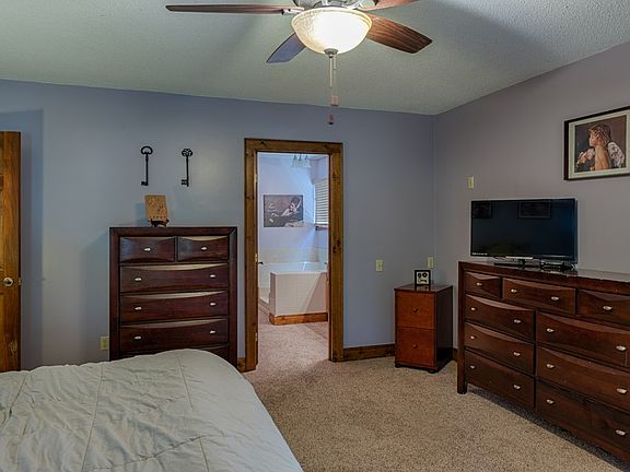 - AMENITIES: Ceiling Fan(s), Breakfast Bar, Eat-In Kitchen, Garage Door Opener, Wet Bar, Main Level Bedroom Suite, Disposal, Dryer Hook Up Electric, Twin Sink Vanity, Built-In Bookcase, Garden Tub, Patio Covered, Built-in Desk, Attic Storage, Deck Covered, Utility Sink, Kitchen Island, Deck on Waterfront, Firepit, Near Walking Trail, Kitchenette