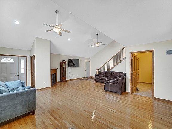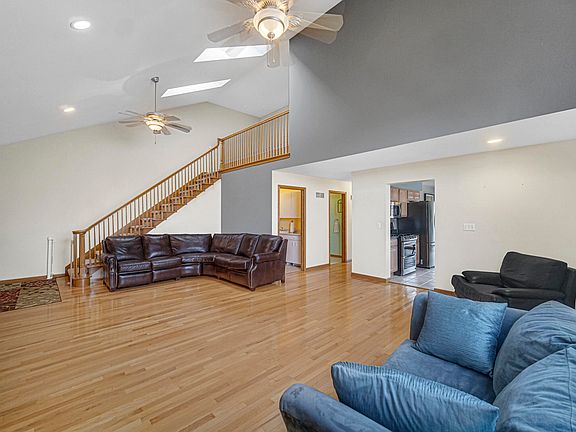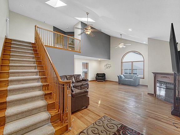 It is rare to find a 4 bedroom, 3.5 bath duplex. Especially one that has a vaulted ceiling in the living room with skylights, an upstairs loft overlooking the living room, a master bedroom on the main level with a walk in closet and private full bath, a main level laundry room that comes with high efficiency washer and dryer, cabinets for storage, and a laundry tub sink. Main level has hardwood flooring and a large palladium window. Upstairs you have 2 bedrooms. The larger bedroom has a trayed ceiling. The upstairs bath has a jacuzzi whirlpool tub and a shower head. Brand new concrete driveway and walkway was done in 2023. Renewal by Anderson sliding glass door installed 5 years ago, installed egress window in basement bedroom in 2020 & remodeled the flooring and bedroom, updated landscaping in 2023, newer carpeting in the finished basement, all newer stainless steel kitchen appliances, and custom window treatments that have the top down bottom up feature in them that allow you to get privacy from only the bottom half of the window if you need it. There is a kid's jungle gym playpark 1 block away with access to the bike trail as well. This is a quiet neighborhood with speed bumps in the nearby street to keep traffic slow.