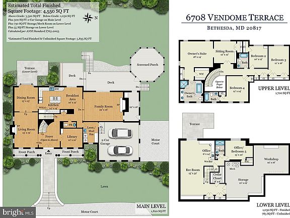 Covid requirements:PLEASE RESPECT THE SELLER! All MUST wear mask, gloves and shoe covers which are provided. NO BARE FEET! Please do not touch lights, doors, etc. - Elegant, gracious, classic, airy colonial on magnificent lot on a cul-de-sac! Drive up to the circular driveway for a gentle approach. This is a perfect retreat from the hustle bustle! Enjoy your outdoor time on the deck, or the huge screened porch that is nestled in the trees, or playing ball in the yard. Inside find a perfect circular flow. In addition to the large, bright living and dining rooms, there is a light filled library/office, warm and spacious family room and gorgeous updated granite and stainless table space kitchen on the main level. You'll also find the renovated powder room, laundry room, a small garden room and entry from the side loading two car garage here. There are oak and hickory floors and two fireplaces, one gas and one wood burning. Sliding doors from the kitchen and family room will take you to the relaxing deck and fabulous screened porch and yard. Upstairs you will find an Owners' Suite with entry through a charming sitting room, with built-in bookcases. The bedroom itself is spacious and two exposures let in just the right amount of light! Two excellent closets and the owner's bathroom complete the suite. The bathroom has a separate jetted tub, newly redone shower and double sinks with granite tops. There are three additional bedrooms, a hall bath and one full bath en-suite in bedroom #4. You will marvel at the closet space up here! The lower level has a huge sun filled walkout recreation room with beautiful built-ins and a built-in work station/desk area with sink. There is an additional bedroom (#5) here and a newly renovated full bath. The storage area is enormous, has built-in shelving and leads to a large workshop area. And if you thought there were plenty of closets upstairs, there are even more on the lower level. Add to all this a new roof, new Renewal by Anderson windows, and a newly redone owners' shower and you'll be happy to be living in this wonderful home. V
