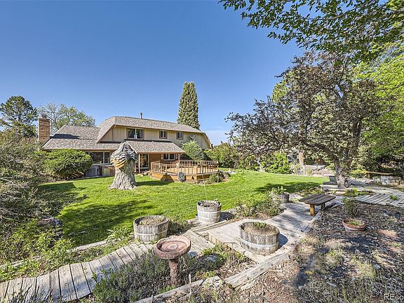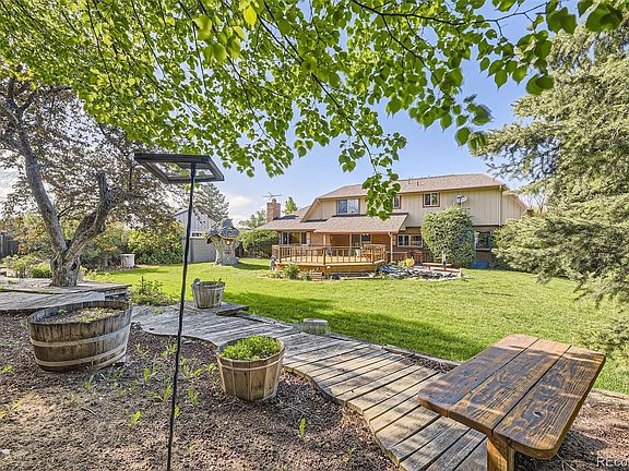 Refreshed price for a lot of home! Fantastic 2-story, 4 Bedroom/3 bath home (plus conforming bedroom potential in basement!) in popular and close-to-everything in Littleton, Columbine Knolls! Beautifully maintained, this home has generous custom cabinetry, an ideally located and recently refreshed double-door office/study near entry, roomy living room/dining room combo, handy powder room, main level laundry mud pass-through to garage and large open kitchen opening to nook eating area and sunny family room with brick gas fireplace backing to private and SPECTACULAR BACKYARD! Fully fenced backyard is simply enchanting with huge free-standing wood octagonal custom-built deck, covered and uncovered patio, built-in BBQ Center, gardening and sitting areas, and operating pond with fish. Don’t miss the recently updated basement rec/family/playroom plus a Workshop Room with plenty of space for a hobby-lover to putter! The floorplan is classic and invites room to grow plus the bones are great; new composition roof 2024, brand new furnace 2025, new sewer line in 2017. You'll remember this one for "gnome house" tree stump that enhances the charm of the backyard retreat.