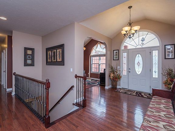 Walk inside the gorgeous hardwood foyer, of this 3 BR 3.5 bath 3000 + TFLS home & you will find an elegant formal dining room, (currently used as an office) on your right, split bedrooms and bath on the left. Straight ahead is the warm & inviting great room with 3-way fireplace that opens to a sunny eat-in kitchen with tile flooring, breakfast bar, large dining area, appliance package & an abundance of cabinetry. The adjacent door leads to the large covered deck & paver patio area, perfect for grilling & relaxing in a hammock while the kids/pets play in the fenced backyard. The spacious master offers a walk-in closet, master bath w/tile flooring, dual vanity, whirlpool tub & separate shower. Tiled utility and half bath are conveniently located off the 2 car garage. Finished basement includes a family rm, full bath, 13x16 rm with cedar lined closet, rec area, reading area, work area with bench and unfinished storage, NEW IN OCT 2012 CARPET UPSTAIRS, 13X16 ROOM & FULL BATH IN BASEMENT