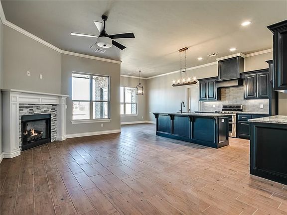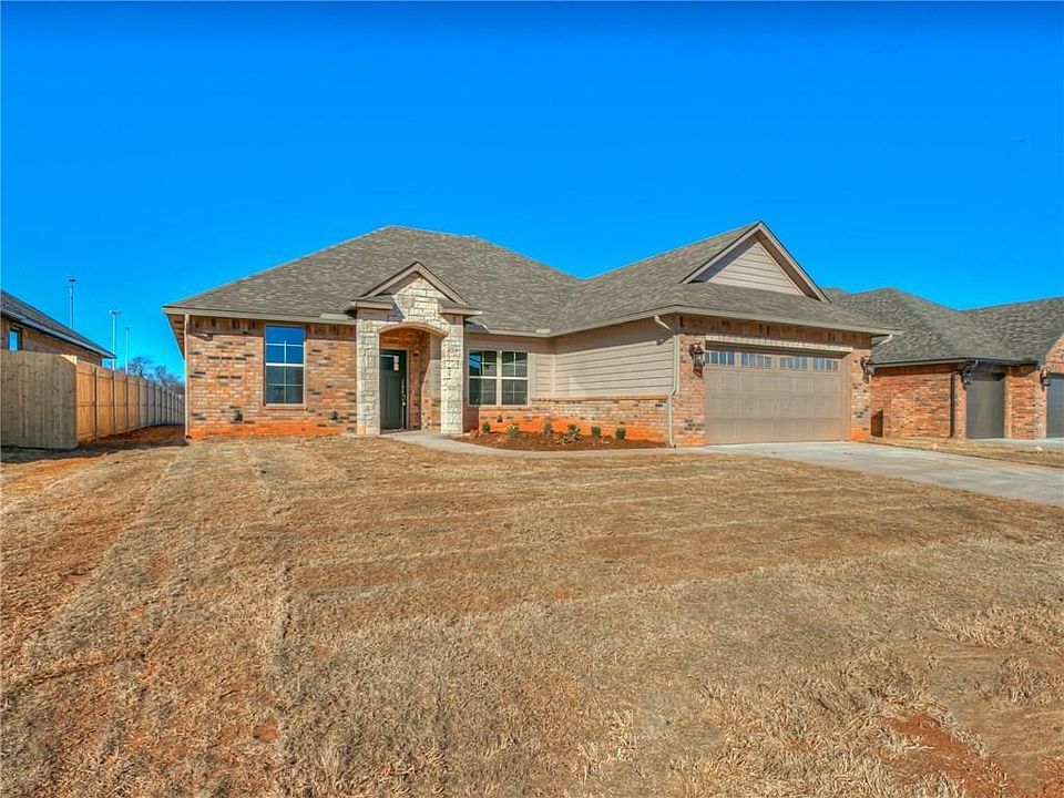 Beautiful almost brand-new home for rent! Only one previous renter. Open kitchen/living room design with four bedrooms or three bedrooms and study. Subway tile back splash and granite counter tops in kitchen. Large kitchen island open to living room, walk in pantry, beautiful tile and wood gas fireplace. Ceramic wood looking tile throughout entry, kitchen, living and halls ways! Perfect for high traffic areas! Spacious master bedroom en suite with tray ceilings, double vanities and separate jetted tub. Master bedroom closet boasts built-ins for shoes and large built-in dresser! Warm and inviting grays, white and navy tones used throughout home. Great location right tucked in a wonderful neighborhood just south of the Northwest Expressway. Close to dining, shopping and I-44! 16 SEER AC unit with 95% furnace! Fantastic HVAC system! Call Jennifer at 405-923-1926 for a showing appointment.