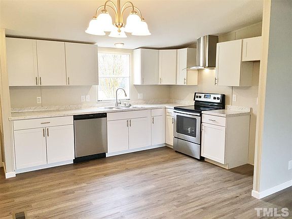 Beautifully renovated home on large lot in Wake County! Open floor plan! Kitchen has been completely upgraded with brand new cabinets, counters and SS appliances. Luxury vinyl plank flooring throughout entire home. Spacious walk-in closet in master bathroom. New plumbing and electrical fixtures. New HVAC system. Close to town and all major highways. No city property taxes!