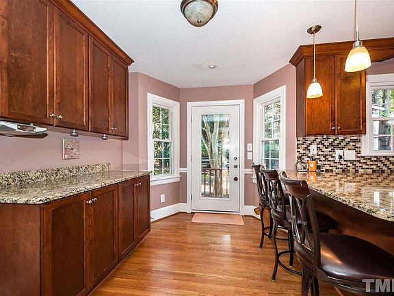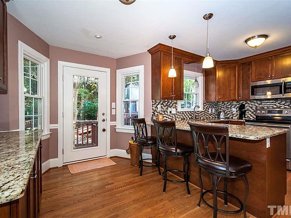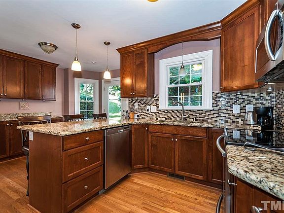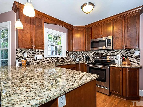 Lovely updated home offers gleaming hdwds, fabulous kitchen w/granite counters, eat-in bar area, SS appl's, serving buffet area & access to the deck. Large liv rm features a wood burning masonry frpl. Spacious master bedroom has walk-in closet & remodeled bath w/granite topped dual vanity, garden tub/Sep shower. Lrg finished 3rd flr w/closet-great teen area. Detached storage shed. New fiber cement siding & roof 2015. Convenient Midtown Raleigh loc - easy access to North Hills Mall, Whole foods, 440 & 540